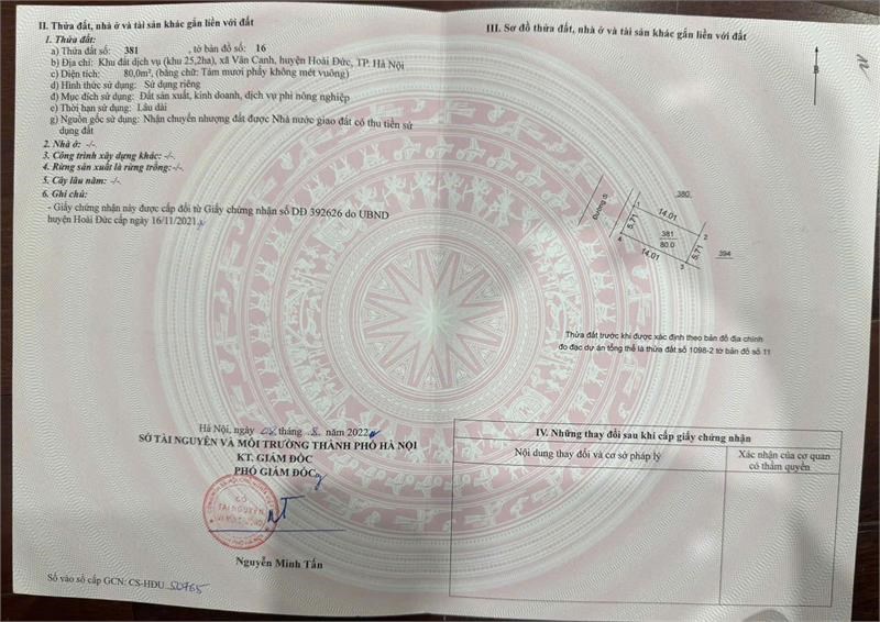chính chủ cần bán gấp lô đất 80m2 Dịch Vụ khu 25.2ha Vân canh giá 15 tỷ